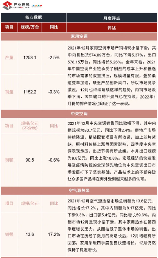 2021年12月制冷產(chǎn)業(yè)鏈產(chǎn)銷數(shù)據(jù)發(fā)布 |